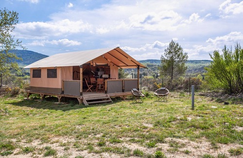 Lodge Victoria 30 m² all comfort in the heart of the Ardèche nature with swimming pool.