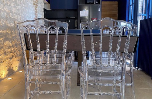 Vous avez également accès à l’espace cuisine, salle à manger salon, ou vous pourrez accueillir jusqu'à 18 personnes assises autour de l'immense table suspendue à l'intérieur et 6 à 8 personnes de plus en ajoutant une table supplémentaire.