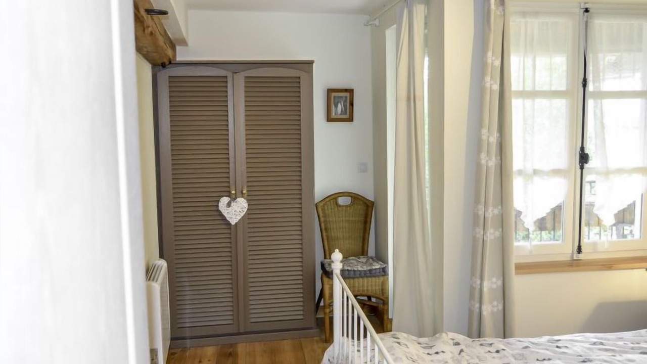 3-room house 120 m2 on 2 levels. Comfortable and cosy furnishings: living/dining room with TV, international TV channels and wood-burning stove. Exit to the terrace. Open kitchen (4 hot plates, oven, dishwasher, microwave, freezer, electric coffee machine, cooking island). Sep. WC. Upper floor: gallery with 1 bed (90 cm, length 190 cm). 1 room with 1 french bed (140 cm, length 190 cm). 1 room with 1 french bed (140 cm, length 190 cm). Exit to the balcony. Shower/WC. Electric heating. Terrace 8 m2. Terrace furniture, barbecue. Facilities: washing machine. Internet (WiFi, free). Please note: non-smoking house. Smoke alarm. Instead of an enclosed bedroom, some sleeping areas are located in an open-plan area (gallery, alcove, etc.).